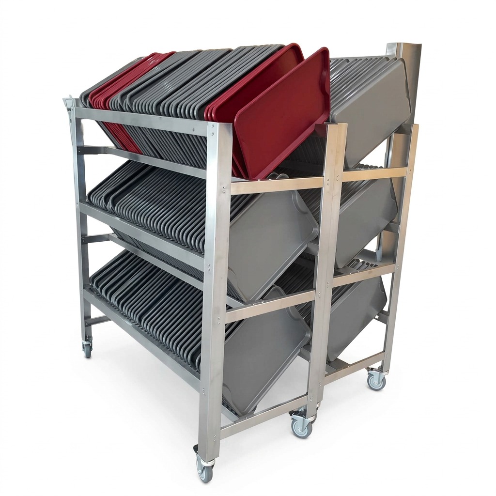 O Carro Seca Bandejas para 120 unidades é a solução ideal para otimizar a secagem e organização de bandejas em refeitórios, cozinhas industriais, hospitais e escolas.