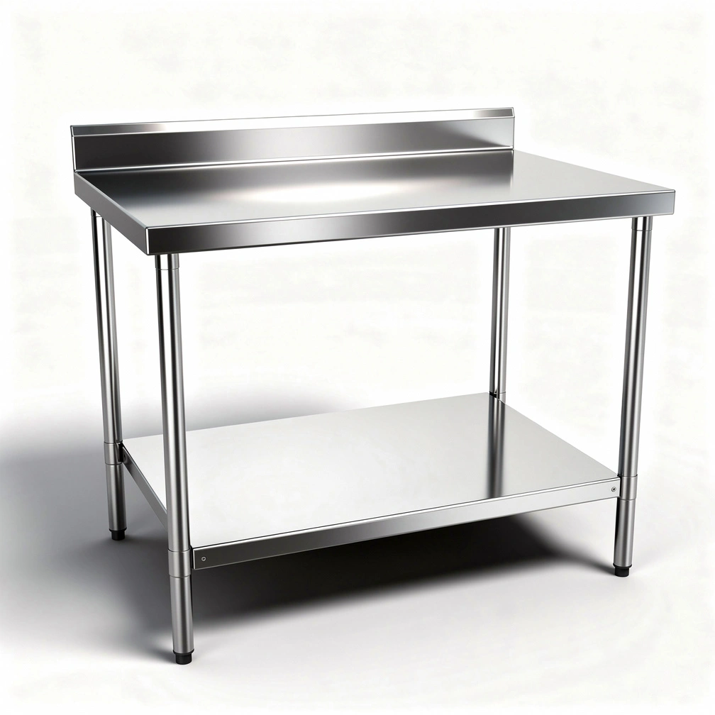 Mesa lisa de encosto, fabricada pela Topema em aço inox acabamento escovado com tampo liso com espelho traseiro e pés de aço inox tubular com sapatas para nivelamento; Utilizada como mesa de encosto em paredes de cozinhas industriais, restaurantes e lojas de fast foods nas áreas de preparo, cocção e higienização de alimentos; Opcional prateleira inferior; Preço de mesa de inox direto da fábrica.
